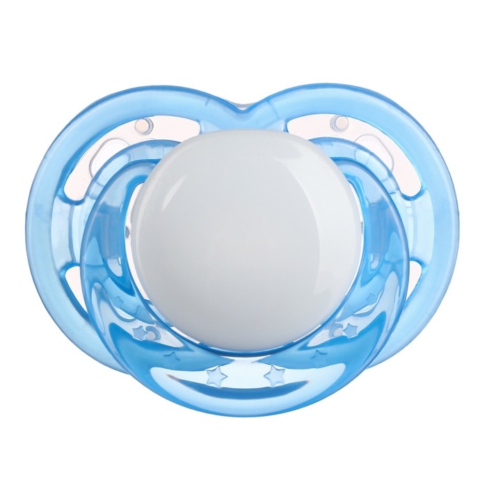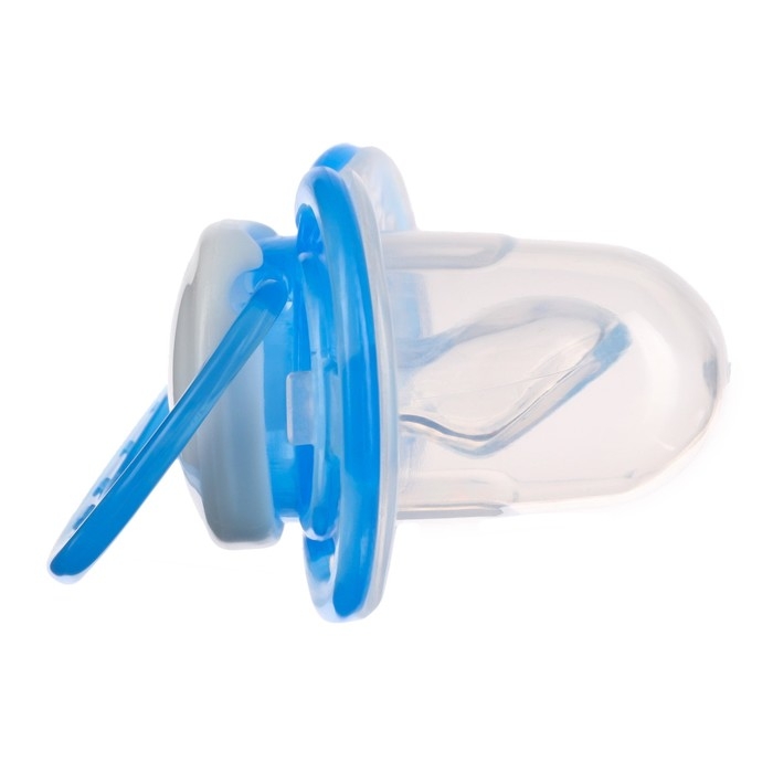 Соска - пустышка силиконовая ортодонтическая, от 12 мес., с колпачком, цвет голубой/белый