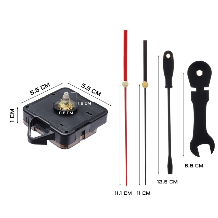 Часовой механизм «Соломон-30. Гаечный ключ», плавный ход, шток 16 мм, стрелки 89/126/110 мм