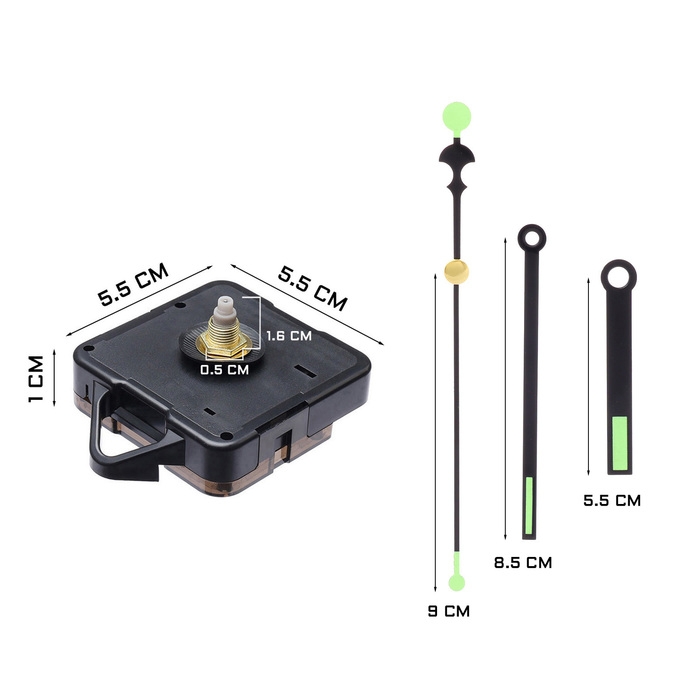 Часовой механизм «Соломон-48», плавный ход, шток 16 мм, стрелки 55/85/90 мм, светящиеся