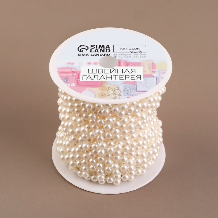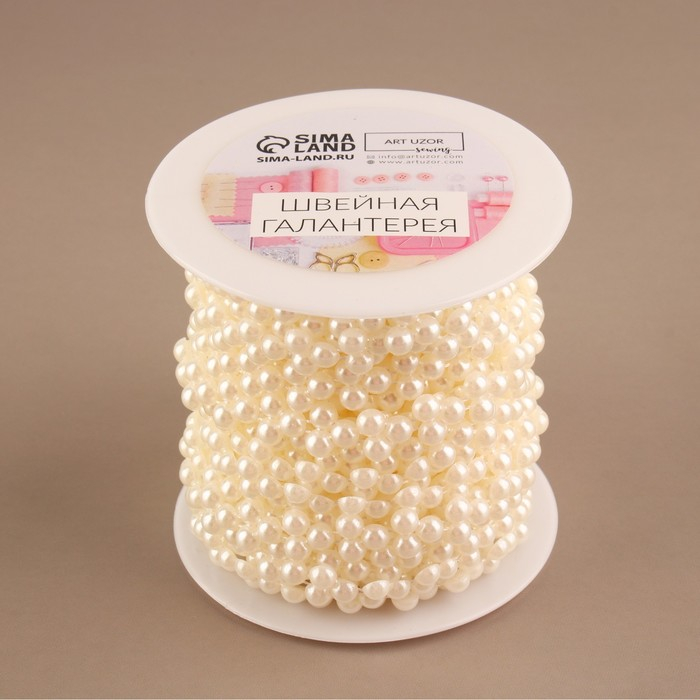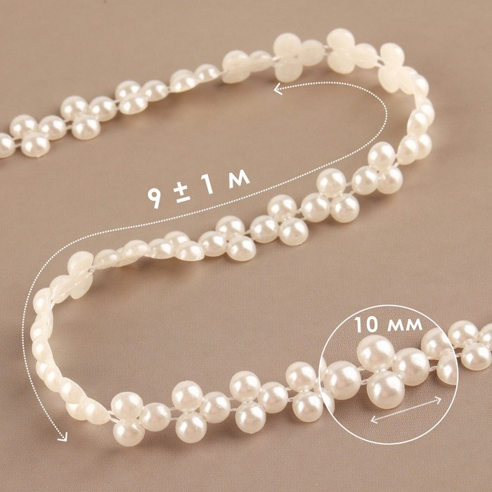 Жемчуг на нитях, плоский, 10 мм, 9 ± 1 м, цвет белый