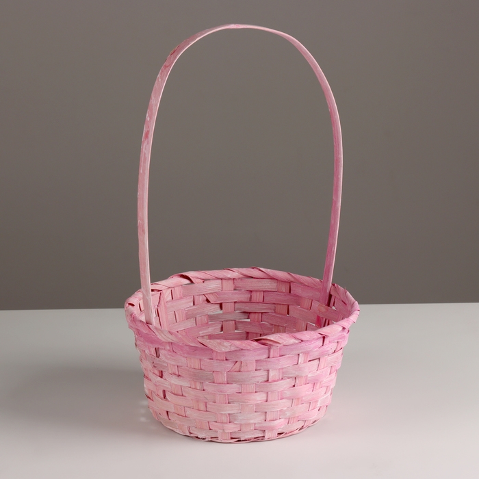 Корзина плетеная, D20х10хH33см, розовый, бамбук