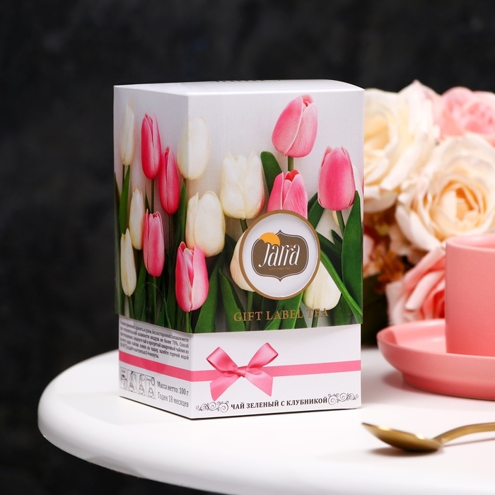 Зеленый крупнолистовой чай "Тюльпаны" с клубникой в красивой подарочной упаковке - это тот самый элемент, которого порой не хватает, чтобы сделать Ваш подарок особенным. Ваш близкий человек обязательно оценит креативный подход.