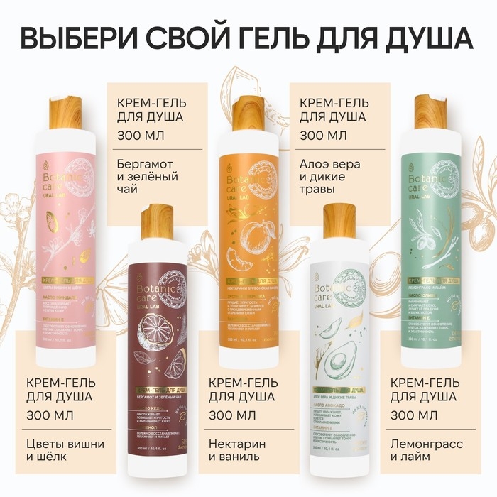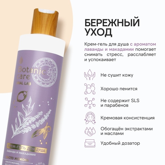 Гель для душа с маслом жожоба и пантенолом, 300 мл, аромат лаванды и макадамии, BOTANIC CARE by URAL LAB