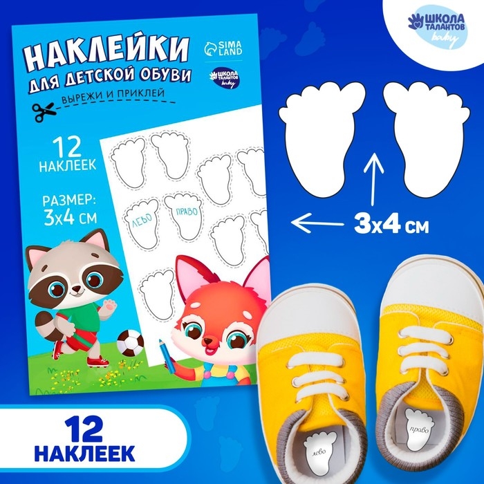 Бирки для обуви. Набор именных наклеек для маркировки детской обуви «Зверята-друзья», 12 шт