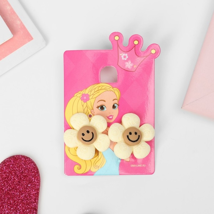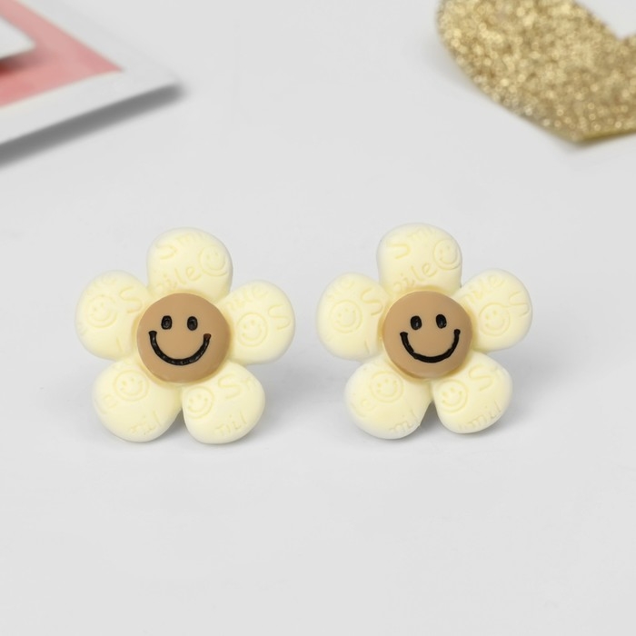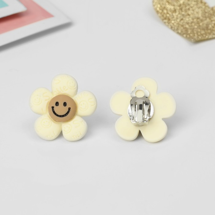 Клипсы детские «Выбражулька» цветок смайл, цвет бежево-коричневый