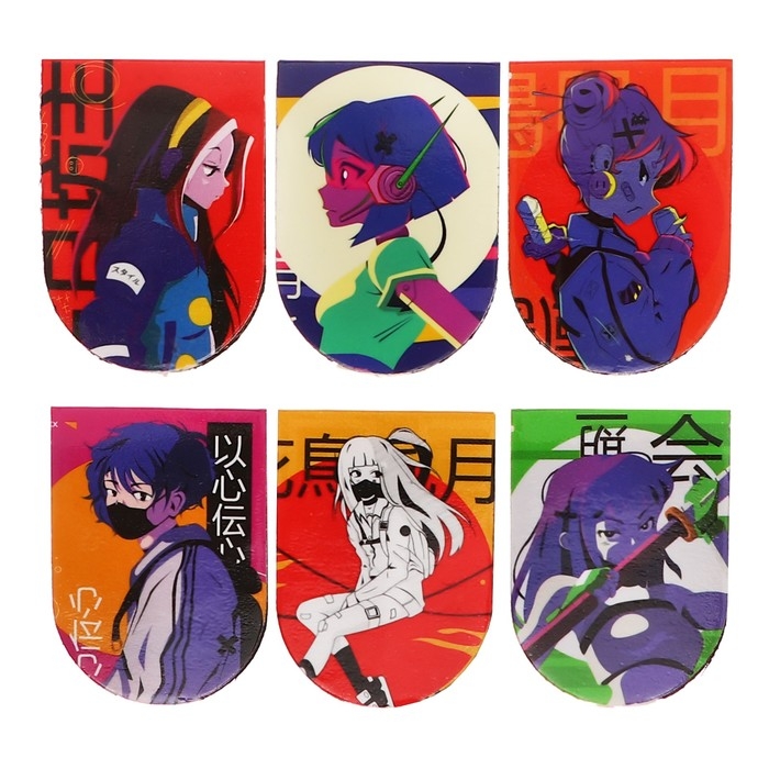 Магнитные закладки 6 штук "Киберпанк Anime"