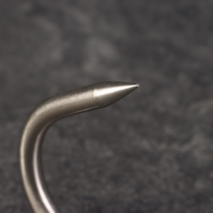 Рабочая часть крюка представляет собой изогнутое лезвие с заостренным кончиком, изготовленное из высококачественной нержавеющей стали. Лезвие имеет достаточную толщину, чтобы обеспечить прочность и долговечность инструмента, а его изгиб позволяет выполнять различные виды разделочных работ, например, отделять мясо от кости или выполнять надрезы для равномерного маринования.
