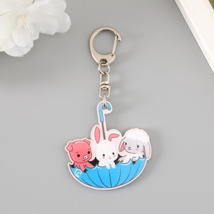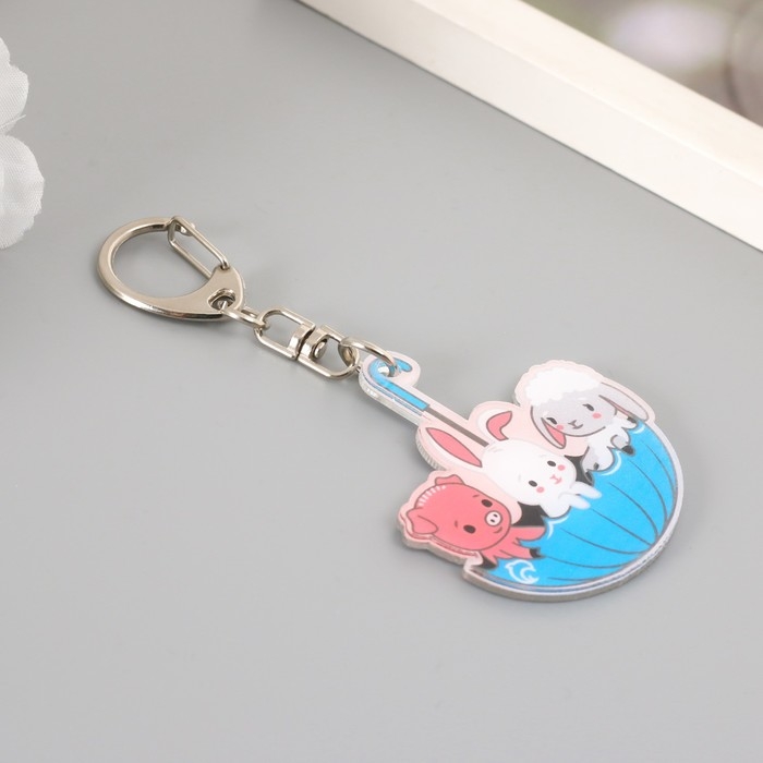 Брелок акрил "Милые зверушки в зонтике" 4,7х4,9 см