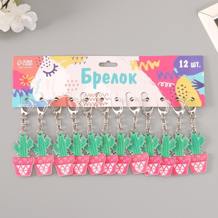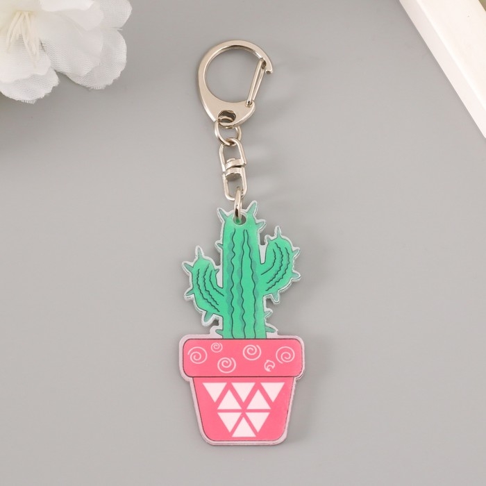 Брелок акрил "Кактус в розовом горшке" 3х5,8 см
