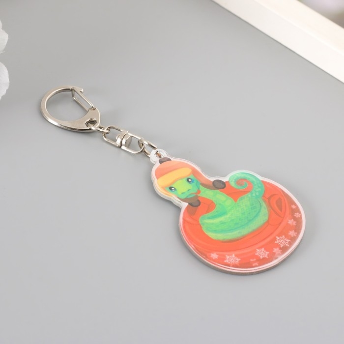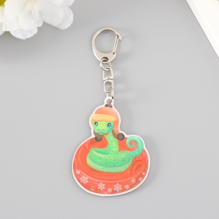 Брелок акрил "Змей в шапке-ушанке на тюбинге" 5,8х4,5 см