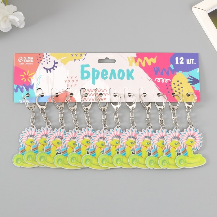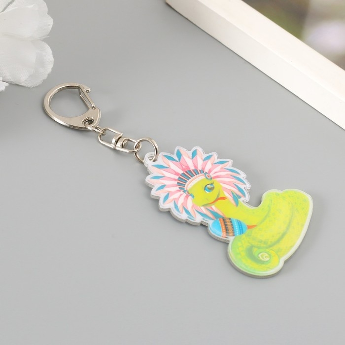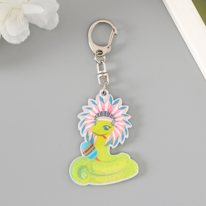Брелок акрил "Змейка с маракасом в индейском головном уборе" 5,8х4,3 см