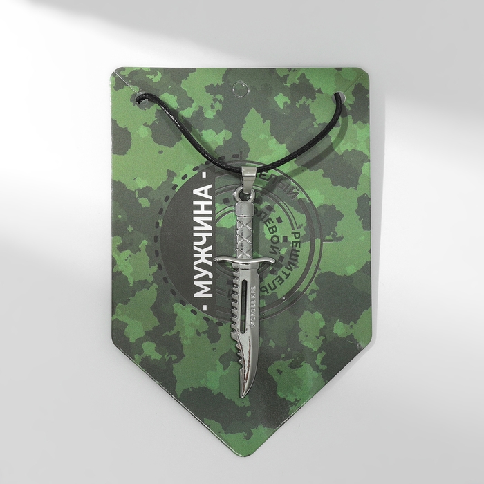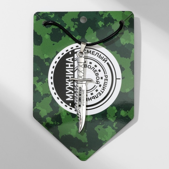 Кулон мужской «Кинжал» гладкий, цвет серебро на чёрном шнурке, 45 см