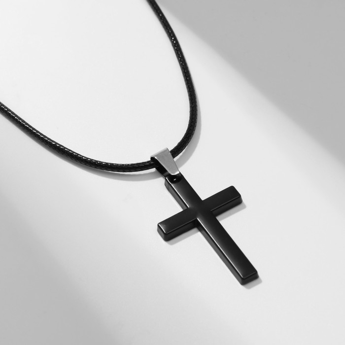 Кулон мужской «Крест» классика, цвет чёрный на чёрном шнурке, 45 см