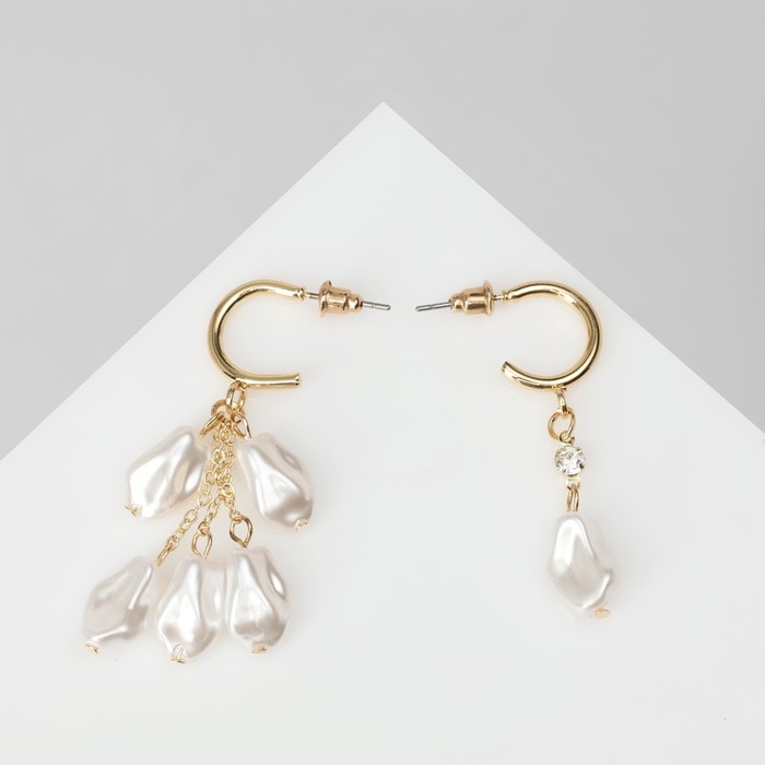 Серьги с жемчугом «Артемида» разные капли, цвет белый в золоте