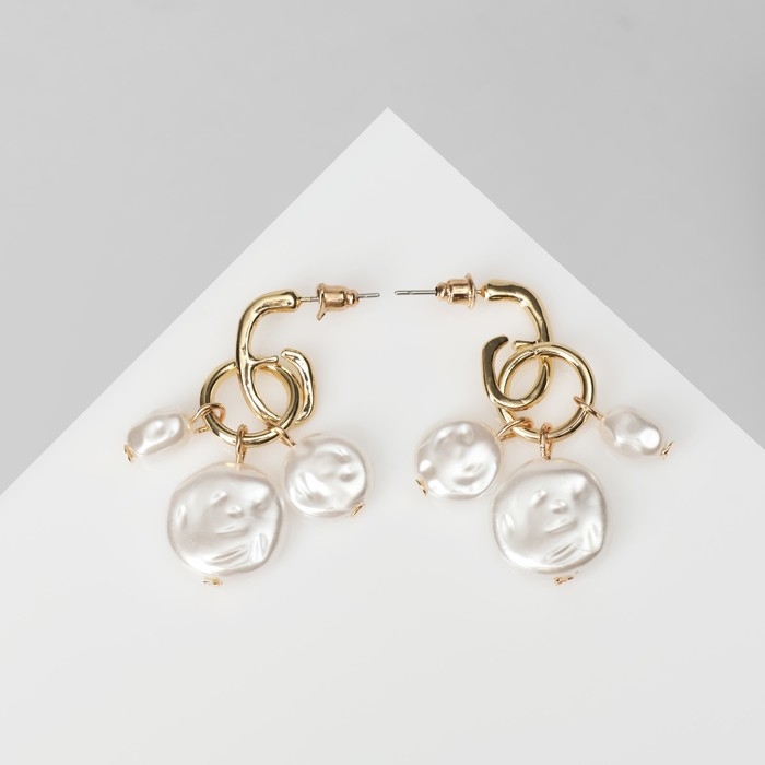 Серьги с жемчугом «Артемида» трио, цвет белый в золоте