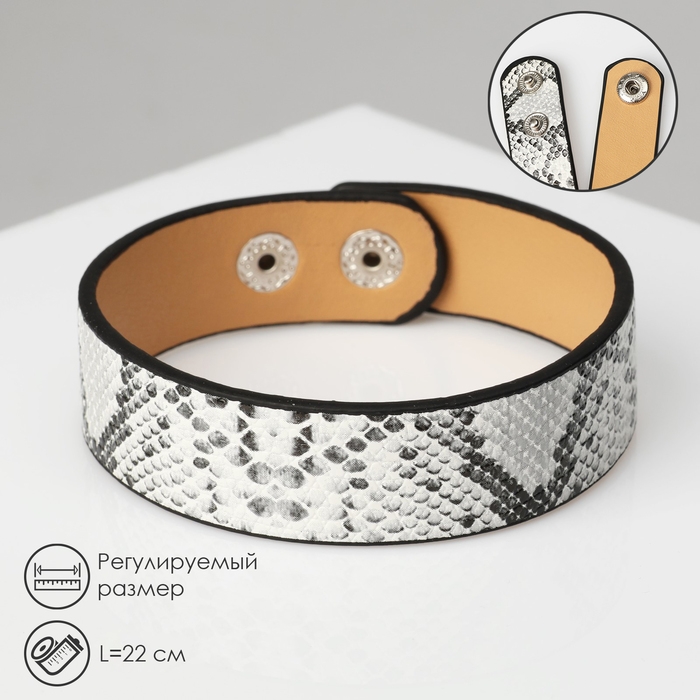 Браслет кожа «Сафари» питон, цвет бело-чёрный, 22 см