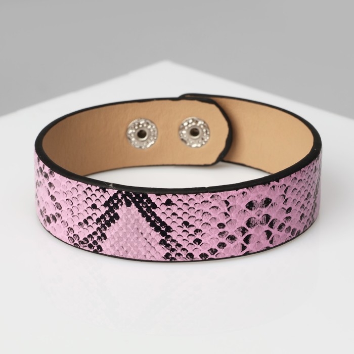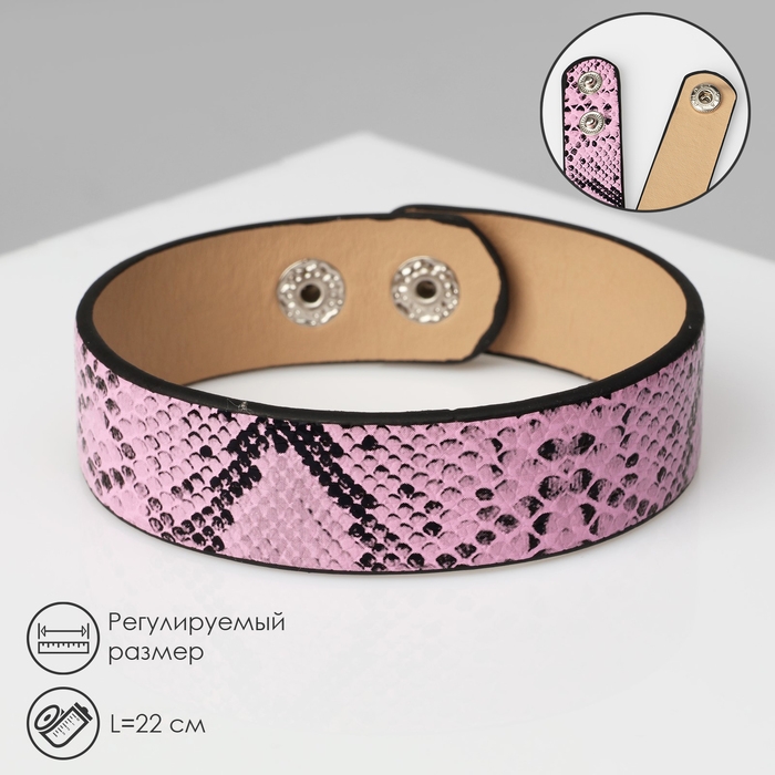 Браслет кожа «Сафари» питон, цвет чёрно-розовый, 22 см