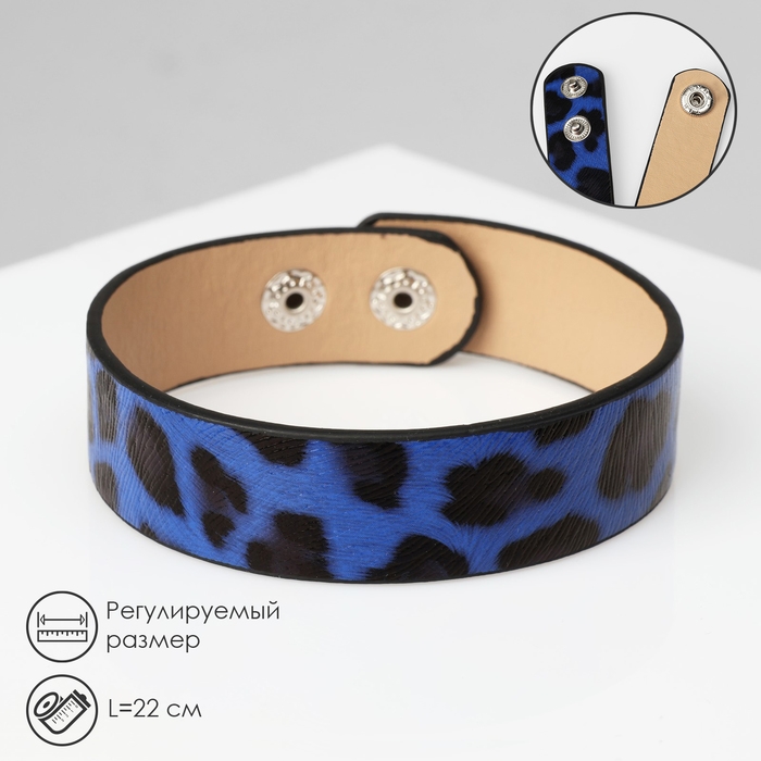 Браслет кожа «Сафари» леопард, цвет чёрно-синий, 22 см