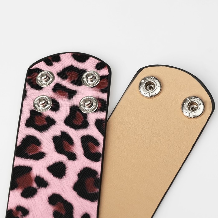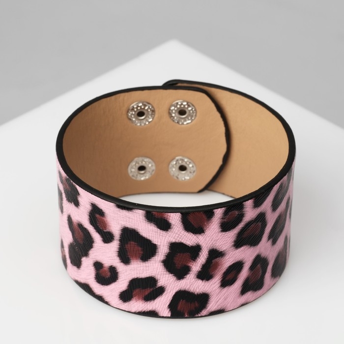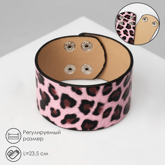 Браслет кожа «Сафари» леопард, широкий, цвет чёрно-розовый, 23,5 см