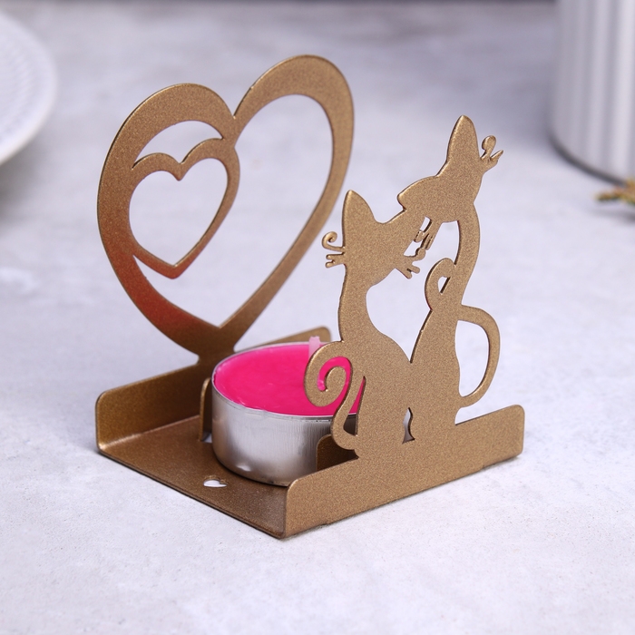 Подсвечник "Любовь и котята" 6,5х5,5х7см, золотой
