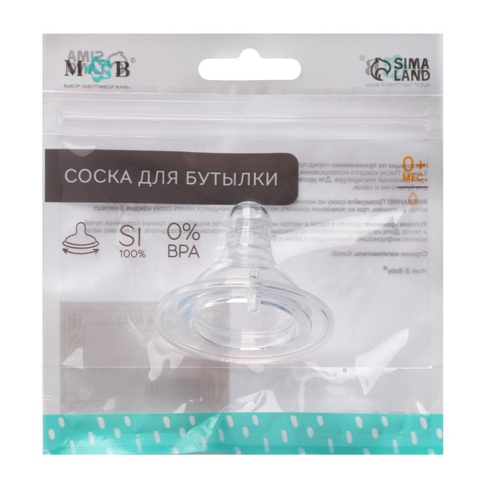 Соска на бутылочку, антиколиковая, от 6 мес.(Х), M&B Standard, широкое горло, быстрый поток, Ø50 мм., для густого питания