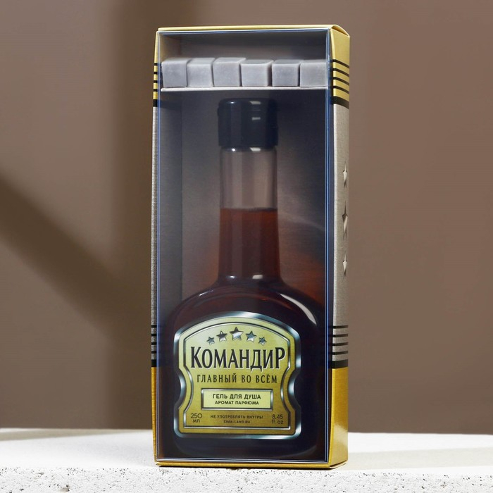 Новогодний подарочный набор косметики «Командир», гель для душа во флаконе коньяка 250 мл и мыло для рук 25 г , Новый Год