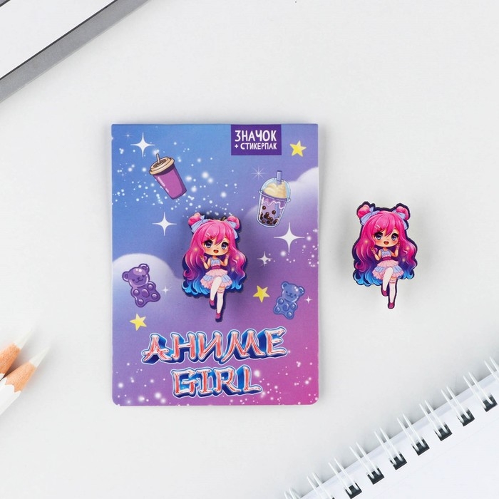 Значок с наклейками «Аниме girl», 6.5 х 9 см