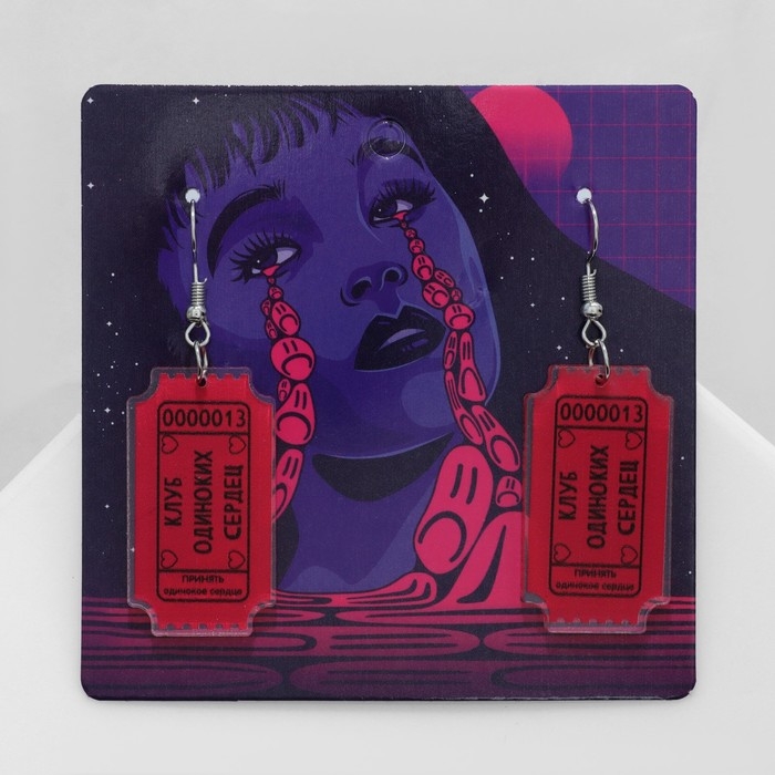 Серьги акрил «Клуб» одиноких сердец, цвет чёрно-розовый