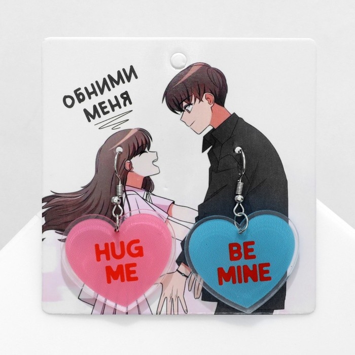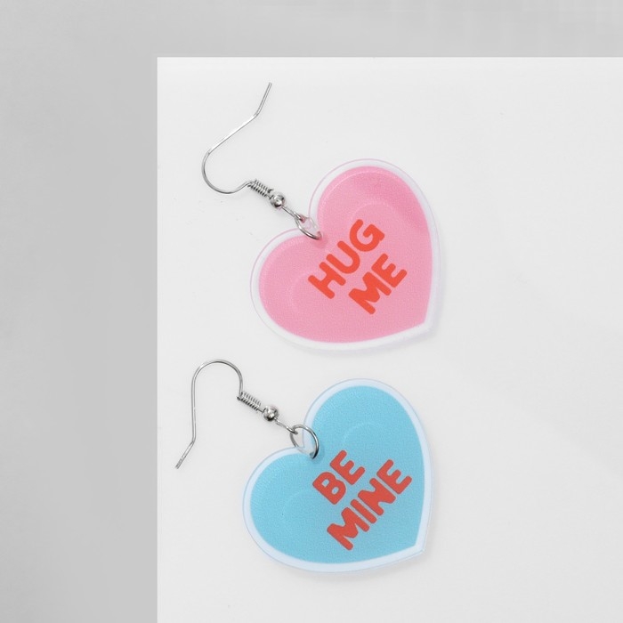 Серьги акрил «Сердце» обнимашки, цвет розово-голубой
