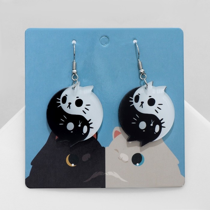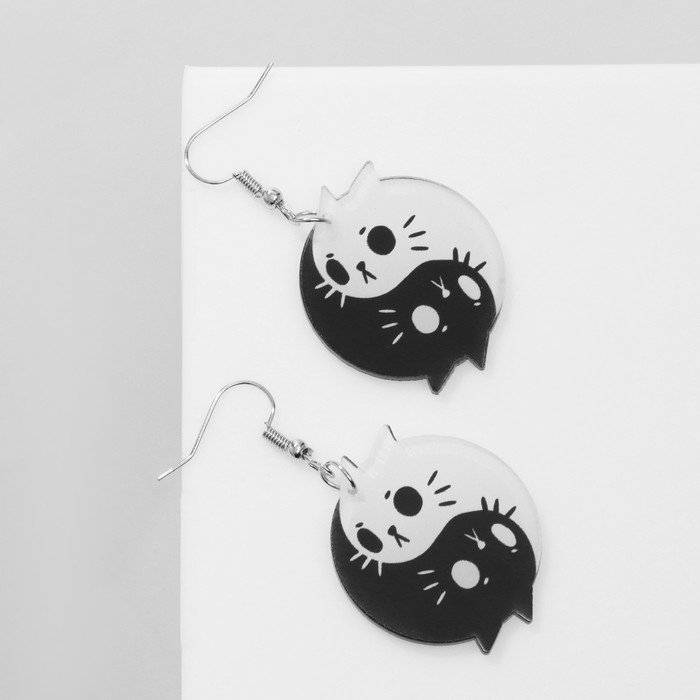 Серьги акрил «Инь-ян» котики, цвет чёрно-белый