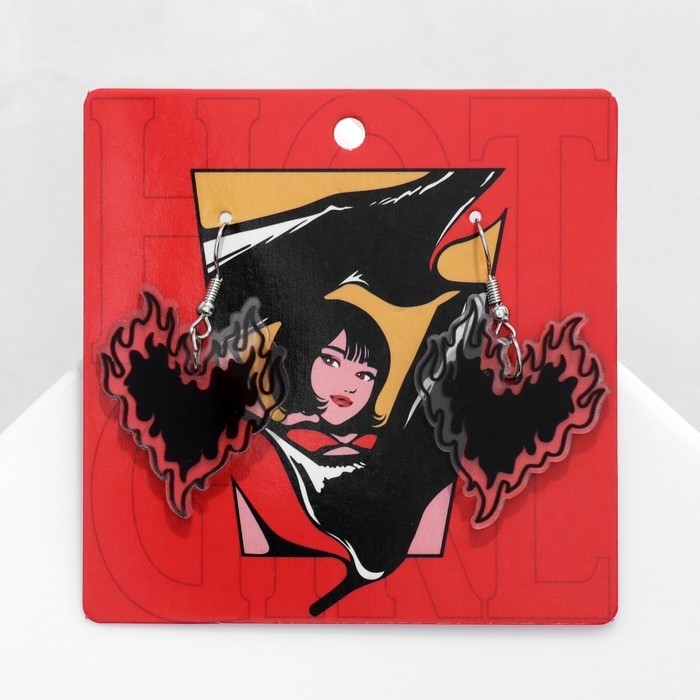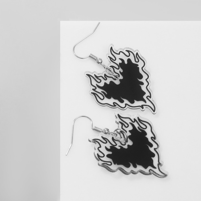 Серьги акрил «Сердце» горящее, цвет чёрный