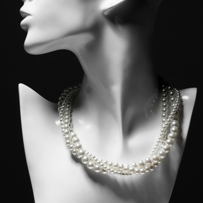 Бусы «Жемчуг» жгут, 3 нити, бусины №4, 6, 8, цвет молочный в серебре, 38 см