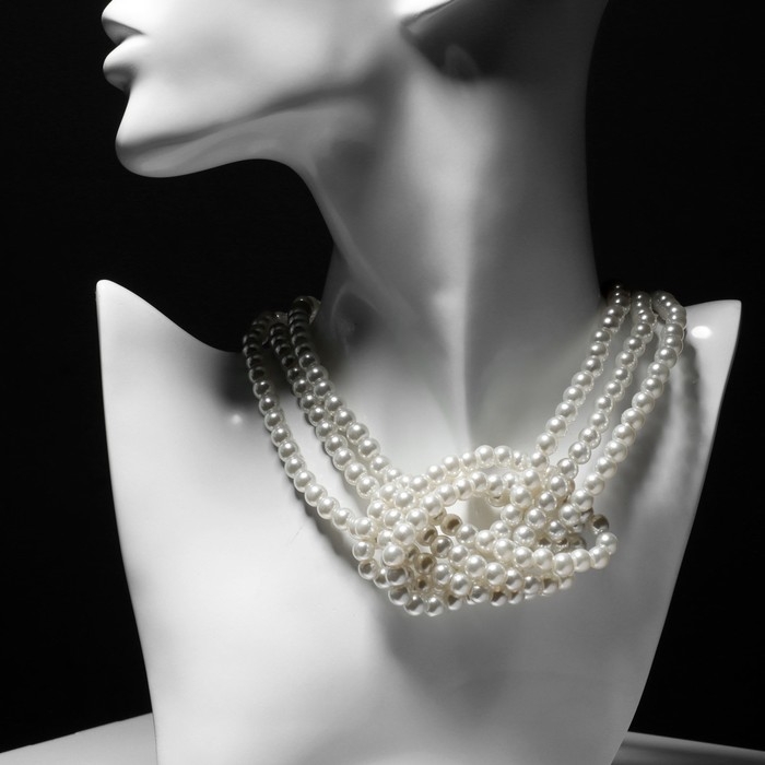 Колье «Жемчужные узел», бусины №6, цвет молочный в серебре, 38 см