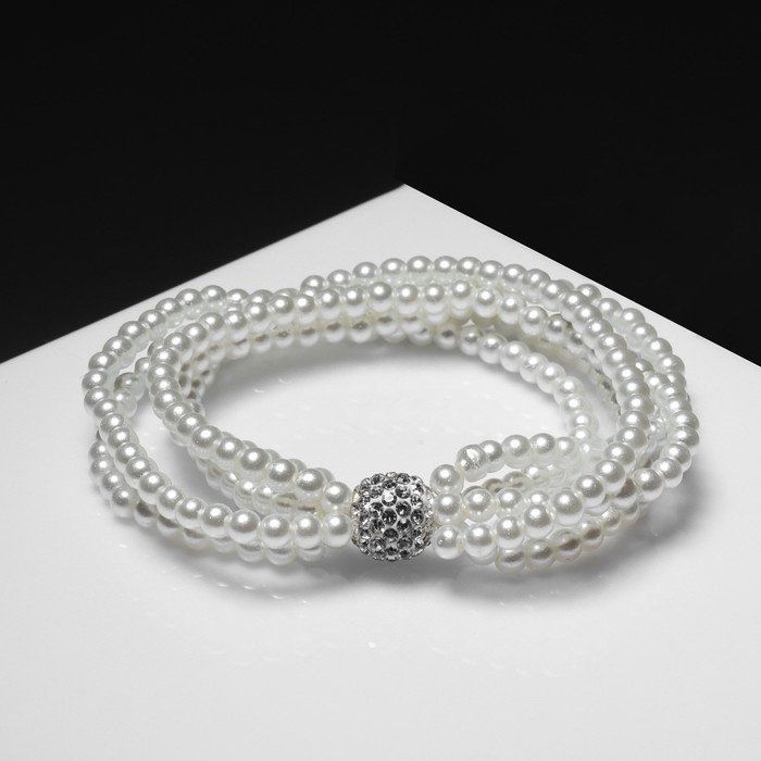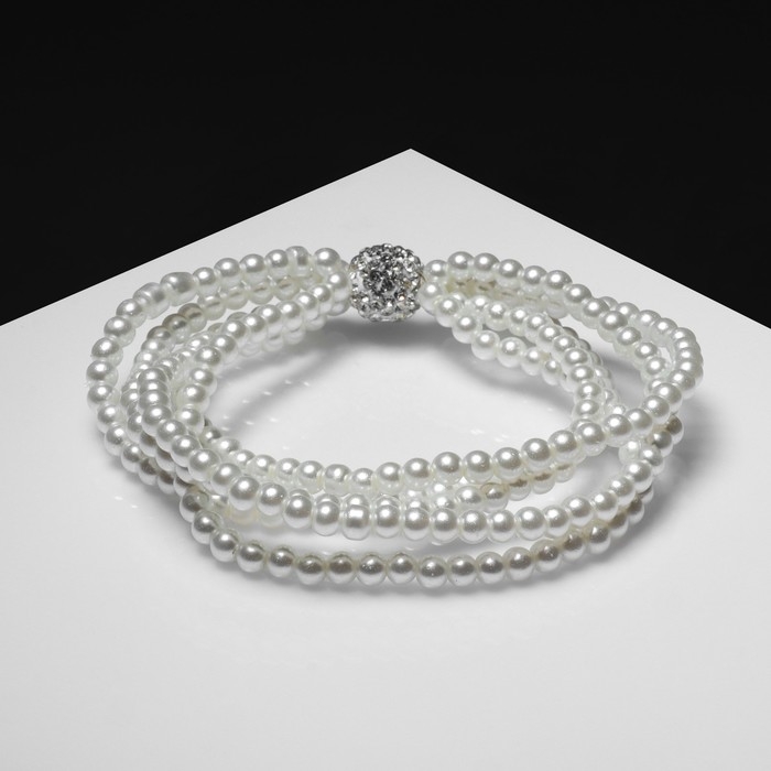 Браслет жемчуг «Невеста» со стразами, шар № 6, цвет белый, d=5,5 см