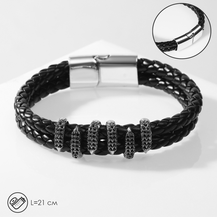 Браслет кожа «Помпеи» стразы, цвет бело-чёрный в золоте, 21 см
