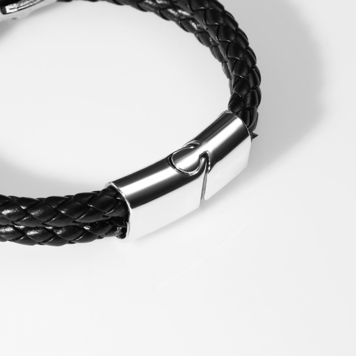 Браслет кожа «Совушка», цвет чёрный в серебре, L=20 см
