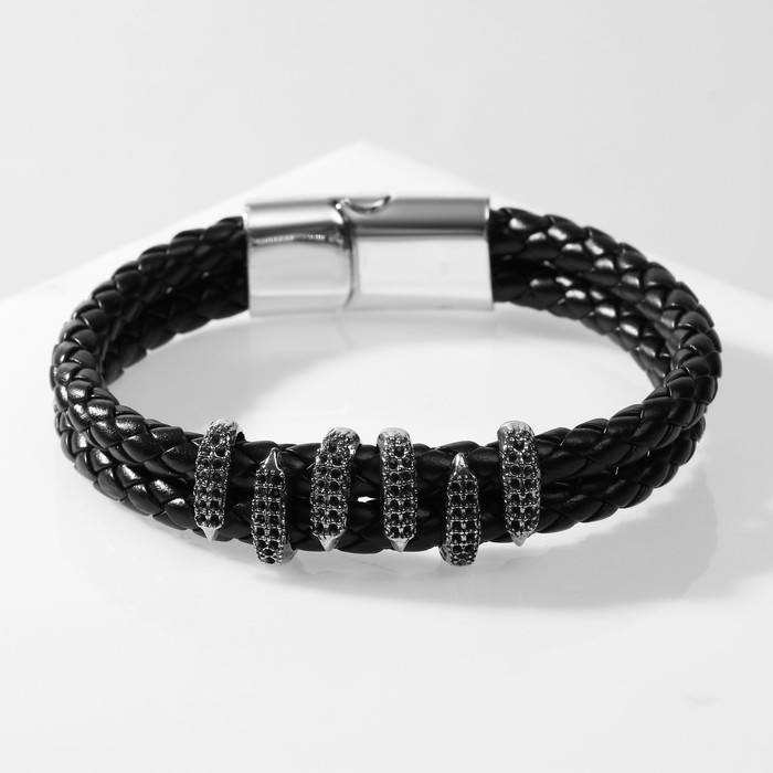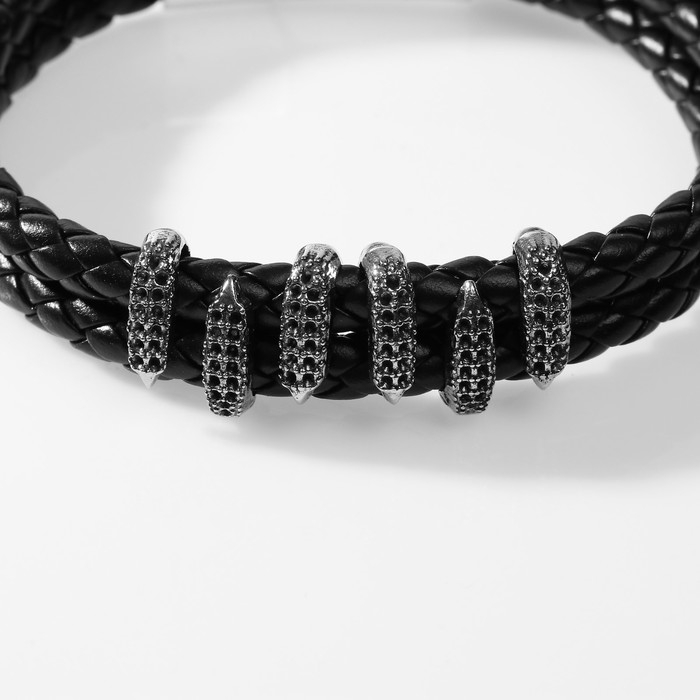 Браслет кожа «Когти» 2 нити, цвет серебряно-чёрный, 21 см
