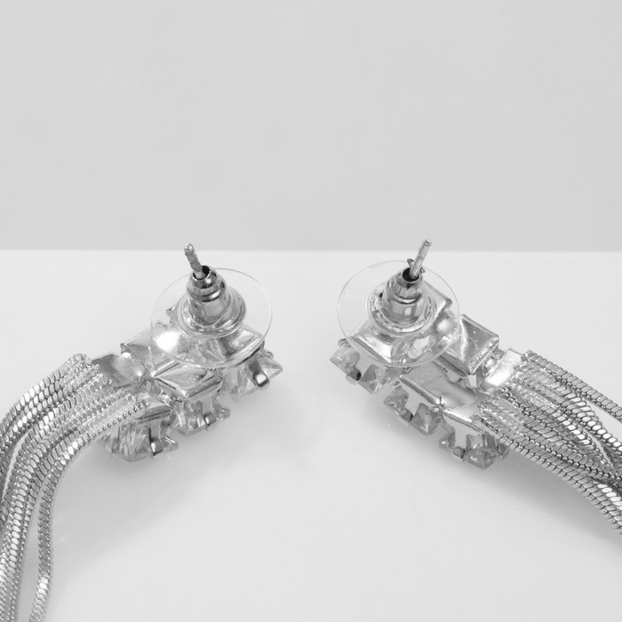 Серьги висячие со стразами «Одиссея» прямоугольник, цвет белый в серебре