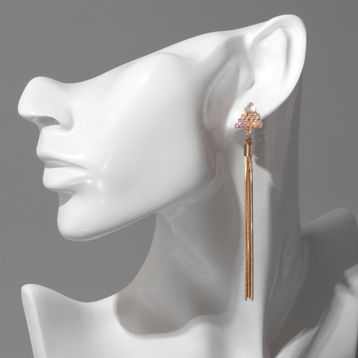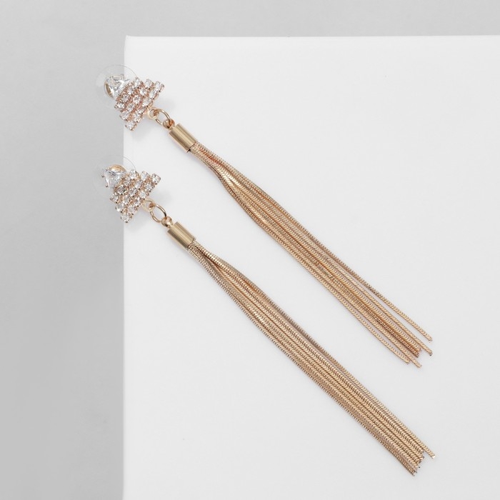 Серьги висячие со стразами «Одиссея» треугольник, цвет белый в золоте