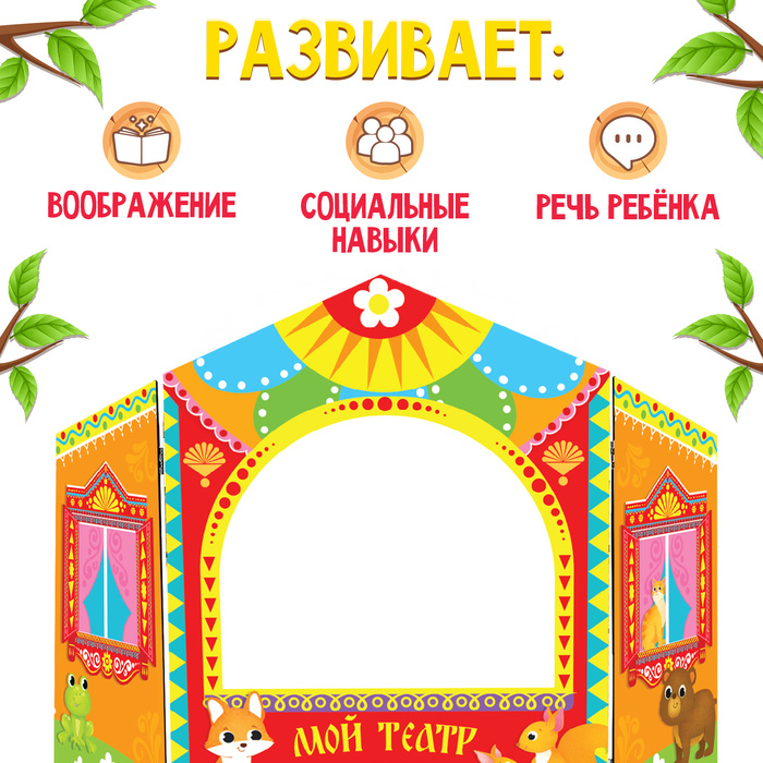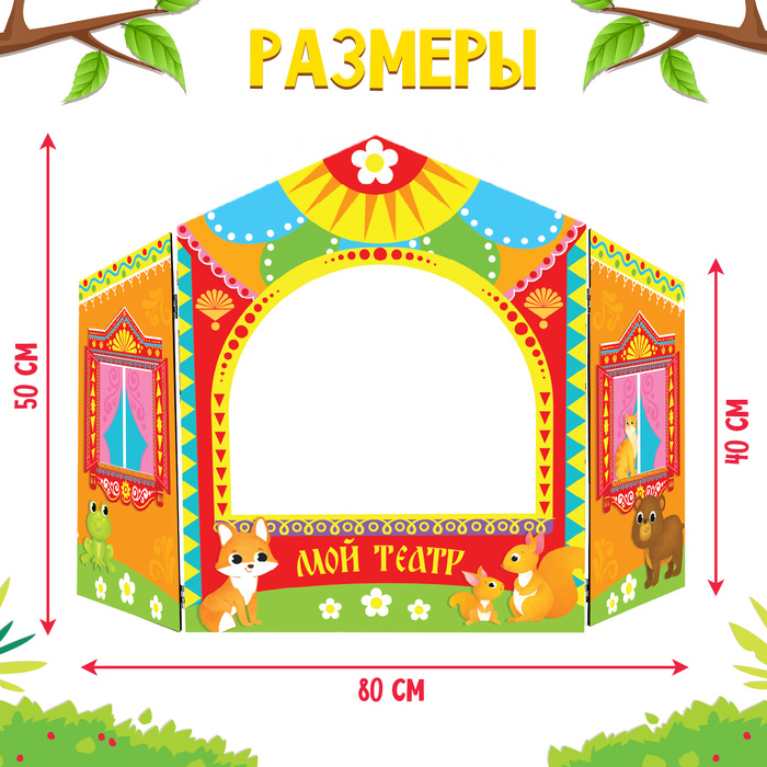 Ширма для кукольного театра. «Зверушки» настольный, оранжевый