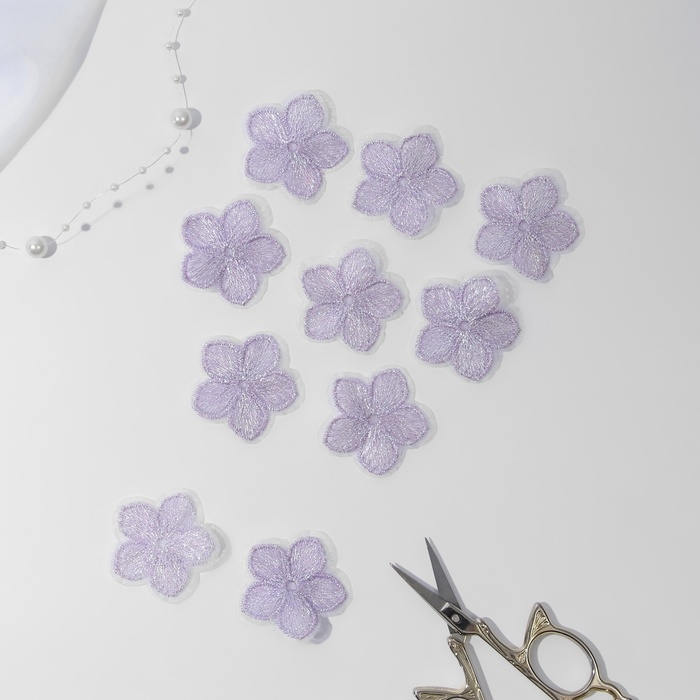Вязаные элементы «Цветочки», 3,5 × 3,5 см, 10 шт, цвет сиреневый/хамелеон