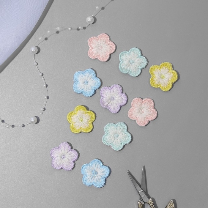Вязаные элементы «Цветочки», 2,8 × 2,8 см, 10 шт, цвет разноцветный