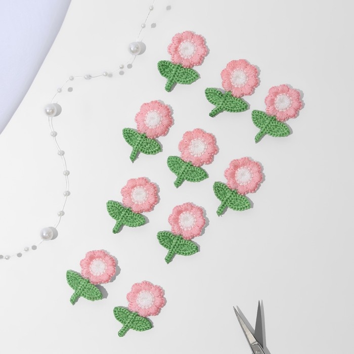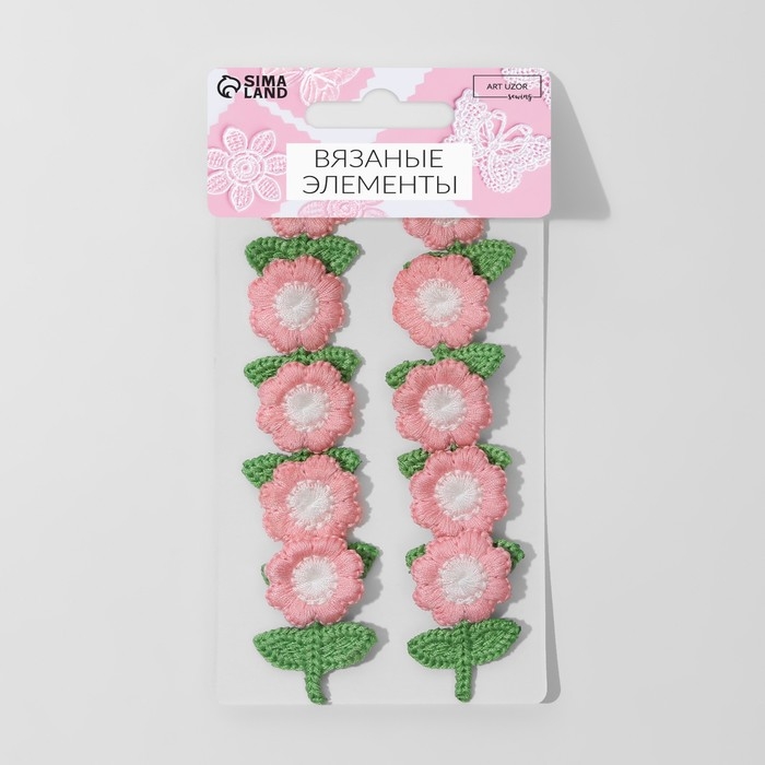 Вязаные элементы «Цветочки», 2,5 × 3,5 см, 10 шт, цвет розовый/зелёный