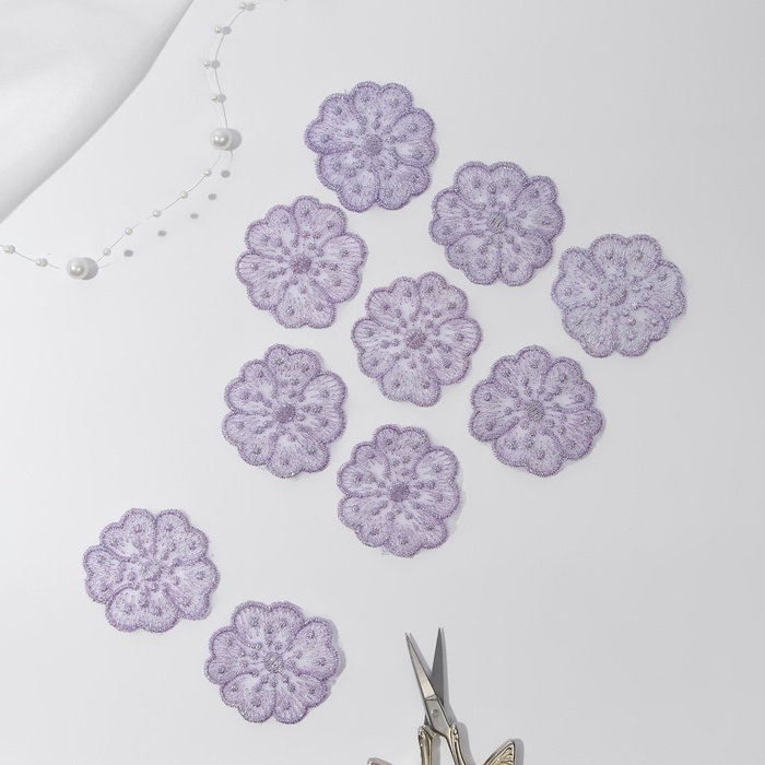 Вязаные элементы «Цветки», 4,5 × 4,5 см, 10 шт, цвет сиреневый/хамелеон