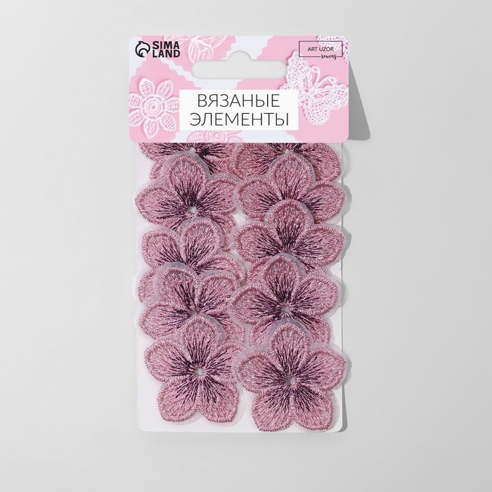 Вязаные элементы «Цветки двухцветные», 3,5 × 3,7 см, 10 шт, цвет розовый