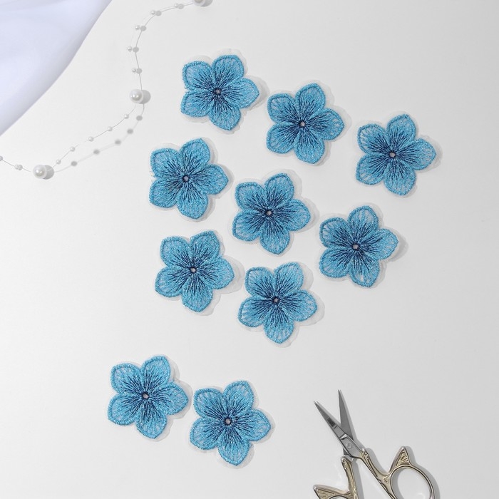 Вязаные элементы «Цветки двухцветные», 4,5 × 4,5 см, 10 шт, цвет голубой