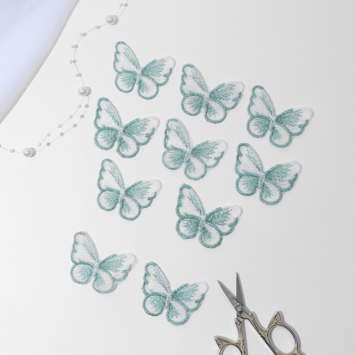 Вязаные элементы «Бабочки», 5,5 × 4 см, 10 шт, цвет зелёный/белый/хамелеон