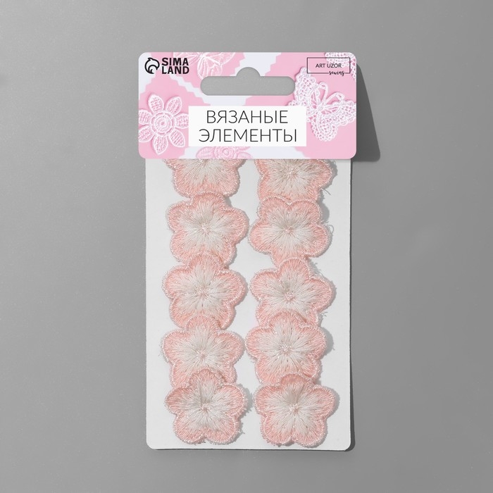 Вязаные элементы «Цветочки», 2,8 × 2,8 см, 10 шт, цвет розовый/белый