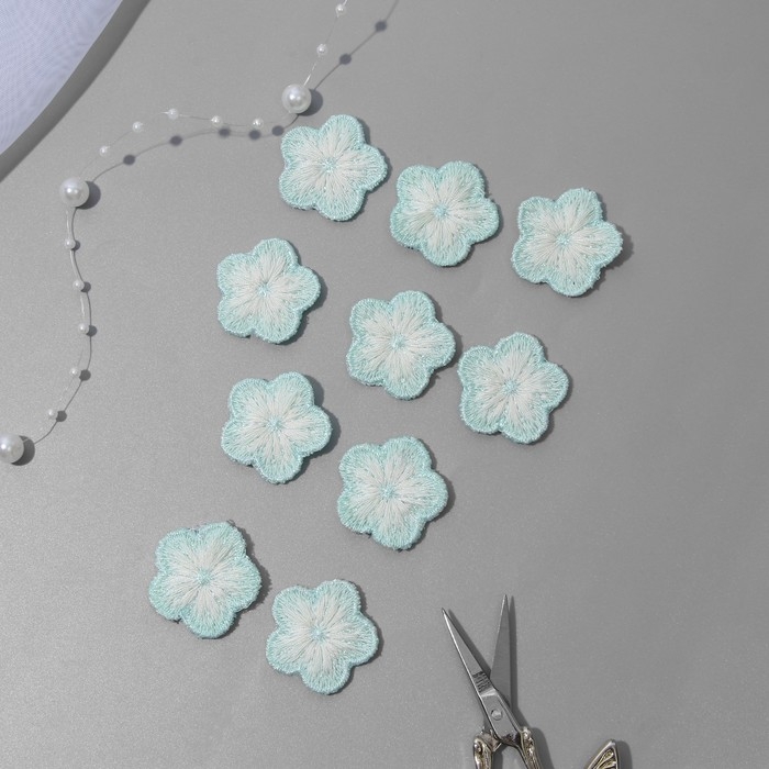 Вязаные элементы «Цветочки», 2,8 × 2,8 см, 10 шт, цвет зелёный/белый