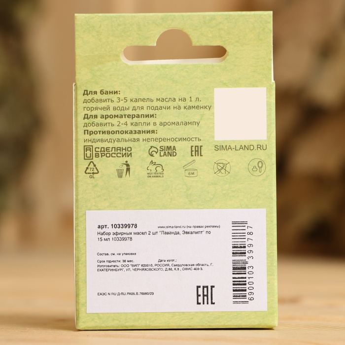 Набор эфирных масел 2 шт "Лаванда, Эвкалипт" по 15 мл